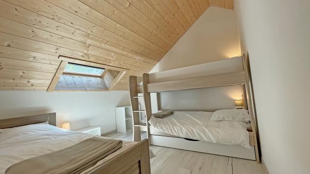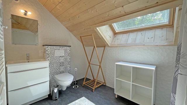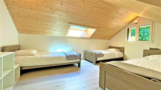 Sur 3 niveaux le Chalet est composé : d’une grande entrée avec 2 placards et WC indépendant, 2 chambres avec lit double en 160, salle de bains avec douche et WC, 2 chambres avec 6 lits simples en 90, salle de bains avec baignoire et WC, une cuisine équipée avec réfrigérateur/congélateur, plaque à induction, four, lave-vaisselle, micro-ondes, grille-pains, bouilloire, cafetière à filtre,... Salle à manger spacieuse, le séjour est équipé d'une télévision. Accès à l’extérieur par le séjour. Stationnement au pied du Chalet ou dans le garage.