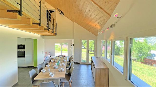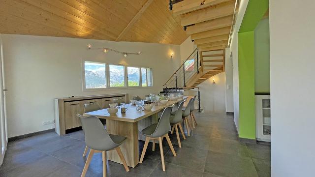 Le + de ce Chalet : La proximité des commerces, des pistes de ski, chemins de randonnées.. La vue exceptionnelle dans chaque pièce du Chalet. Lumineux. Chalet neuf tout confort.