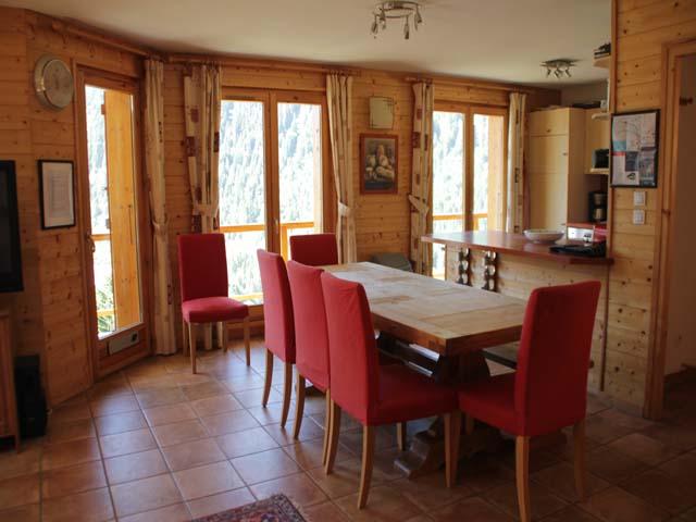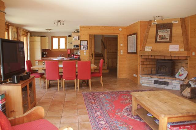 Centre ville à 1000 m. Pistes à 1,20 Km. Gare à 40 Km. Chalet constuit en 2006", route du Roitet, à 1 km du centre village.