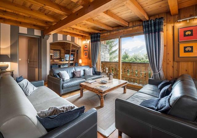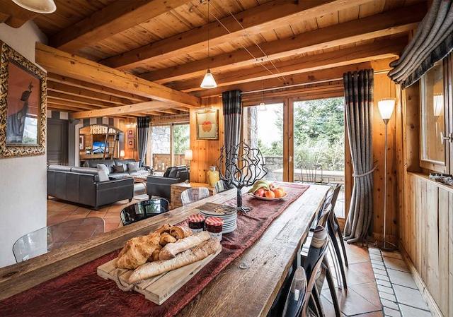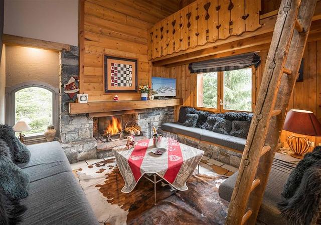 Chalet : Vue sur les pistes de ski. Une grande allée privée peut accueillir jusqu'à quatre véhicules devant le chalet. Sur place à disposition : sauna « bulle », bain à remous extérieur, local à skis avec sèches-chaussures, cheminée, télévision et wifi.