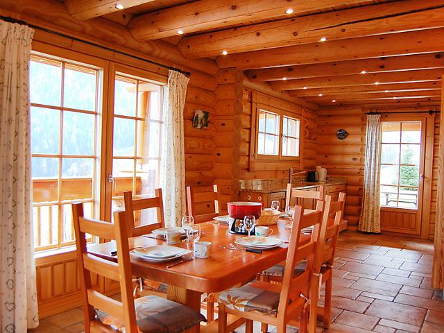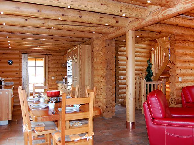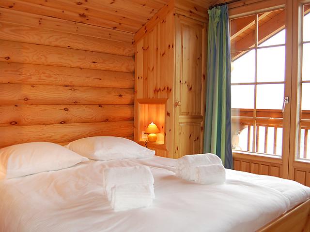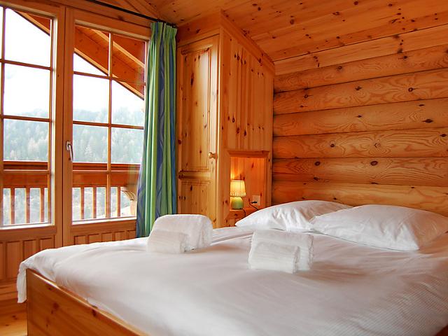 "Gentianes", chalet 4 pièces 160 m2 sur 3 niveaux. Spacieux, aménagement de bon goût et avec beaucoup de bois: grand séjour/salle à manger avec cheminée, TV, lecteur CD et DVD. Sortie sur le balcon, orientée est. Cuisine ouverte (four, lave-vaisselle, 4 plaques vitrocéramique, four micro-ondes, cafetière électrique, Capsules pour machine à café (NESPRESSO) (NON INCLUSES), appareil à raclette, service à fondue (fondue au fromage)). Sortie sur la terrasse. WC séparé. À l'étage inférieur: 1 chambre avec 2 lits (90 cm, longueur 200 cm). Douche/WC. Sous le toit: 1 chambre avec 1 grand-lit (160 cm, longueur 200 cm). Sortie sur le balcon, orientée est. 1 chambre avec 1 grand-lit (160 cm, longueur 200 cm), bain/WC. Sortie sur le balcon. Douche/WC. Terrasse, situation sud et situation est. Meubles de terrasse, chaises longues (3). A disposition: lave-linge, sèche-linge, chaise haute pour enfant, lit bébé jusqu'à 2 ans, sèche-cheveux. Internet (Connexion WIFI, gratuit). Place de parking (2 Voitures), garage, hauteur 200 cm. Veuillez noter: maison non-fumeur.