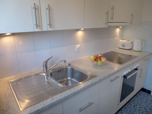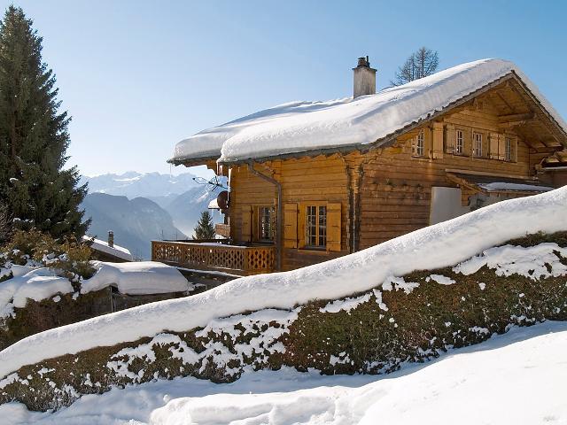 "L'Eau Vive", chalet 5 pièces 120 m2 sur 2 niveaux, situation sud. Aménagement fonctionnel: séjour/salle à manger avec cheminée et TV. Sortie sur le balcon. 1 chambre avec 1 x 2 lits superposés. Sortie sur le balcon. Cuisine (4 plaques de cuisson, four, lave-vaisselle, four micro-ondes) avec passe-plat. Douche/WC. À l'étage supérieur: 1 chambre, mansardée avec 1 grand-lit (160 cm, longueur 200 cm). Sortie sur le balcon. 1 chambre, mansardée avec 2 lits. Sortie sur le balcon. 1 chambre d'enfants, mansardée avec 1 lit (90 cm). Bain/douche/WC. Grand balcon 25 m2, situation sud balcon 15 m2, situation sud, jardin 300 m2, situation sud. Meubles de terrasse. Très belle vue sur les montagnes, la vallée et les alentours. A disposition: lave-linge. Internet (Connexion WIFI, gratuit). Place de parking à 45 m.
