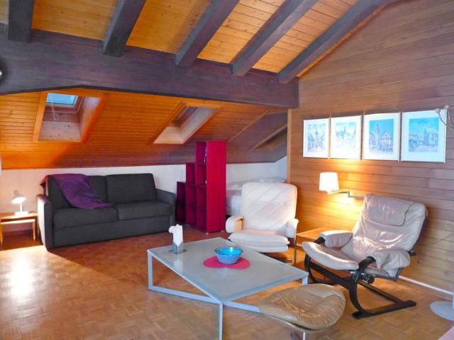 "Marignac 37", sous les toits studio 40 m2 au 5ème étage, situation sud-est. Aménagement fonctionnel et confortable: séjour/salle à manger avec TV (écran plat). Sortie sur le balcon, orientée sud-est. Alcôve mansardée avec 1 grand-lit (1 x 140 cm). Cuisine dans l'entrée (2 plaques de cuisson, four micro-ondes, cafetière électrique, Capsules pour machine à café (Nespresso) (NON INCLUSES), appareil à raclette, service à fondue (fondue au fromage)). Bain/WC. Balcon, situation sud-est. Très belle vue sur les montagnes et les pistes de ski. A disposition: Internet (Connexion WIFI, gratuit). Veuillez noter: logement non-fumeur.