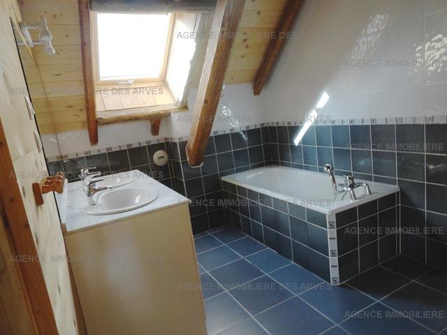 * Au premier étage : une salle de bain, un WC, une chambre avec lit double, une chambre avec 2 lits simples, un salon avec 2 canapés clic clac + cheminée