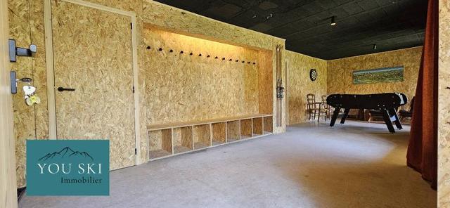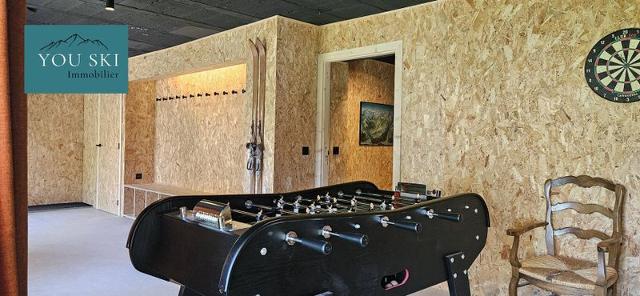 Pour vos moments de jeu et de détente, un coin salon avec TV et baby-foot est à disposition, idéal pour des instants ludiques après une journée à profiter de la montagne.