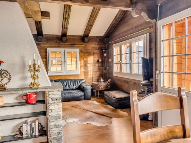 Chesières à 1 km de Villars: Petit chalet rustique "Malibu", de 2 étages, environné par les prés. À 1.5 km du centre de Villars, situation tranquille, ensoleillée sur une colline, orientée sud. A usage privé: jardin avec pelouse et plantes. Infrastructures de la Maison: lave-linge, sèche-linge. Accès en voiture par un chemin raide de 400 m de long. En hiver, merci de prévoir des chaînes. Place de parking près de la maison sur le terrain. Magasins 1.5 km, magasin d'alimentation 500 m, restaurant 400 m, boulangerie 500 m, arrêt du bus 400 m, gare ferroviaire "Villars" 2 km, piscine couverte 1.5 km, centre thermal "Lavey-les-Bains" 19 km. Port plaisance 25 km, terrain de golf (18 trous) 8 km, tennis couvert 2.8 km, centre sportif 2.8 km, train de montagne 2 km, télécabine 1.8 km. Arrêt du ski-bus 400 m, école de ski 1.9 km, école de ski d'enfants 2.8 km, patinoire 1.5 km. Service de navette gratuite desservant le domaine skiable Villars.
