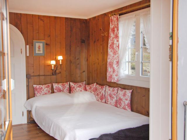 "Chalet Malibu", chalet 4 pièces 70 m2 sur 2 niveaux, situation sud. Aménagement simple et rustique: séjour/salle à manger mansardé avec cheminée et table pour les repas. Sortie sur le balcon, orientée sud. 1 chambre avec 1 lit (120 cm, longueur 200 cm). Petite cuisine (4 plaques de cuisson, four, four micro-ondes, cafetière électrique, Capsules pour machine à café (Senseo), appareil à raclette, service à fondue (fondue au fromage)) avec passe-plat. À l'étage inférieur: (escalier raide) 1 chambre avec 1 grand-lit (140 cm, longueur 200 cm). Sortie sur le jardin, orientée sud. 1 chambre avec 1 lit (120 cm, longueur 200 cm), lavabo. Sortie sur le jardin, orientée sud. Douche/WC, double vasque. Balcon 20 m2, jardin 450 m2. Très belle vue panoramique sur les montagnes et la localité. A disposition: lave-linge, sèche-linge. Internet (Connexion WIFI). Place de parking. 2 animaux/ chiens autorisés.