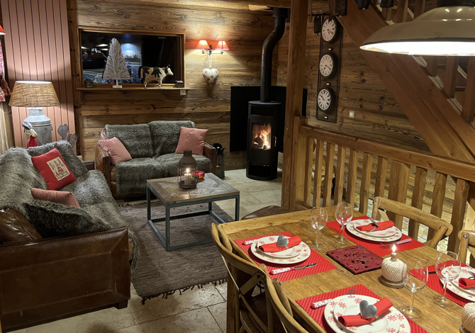 Chalet : Agréable et confortable. Vue sur la station et les pistes. Terrasse panoramique plein sud de 30 m².