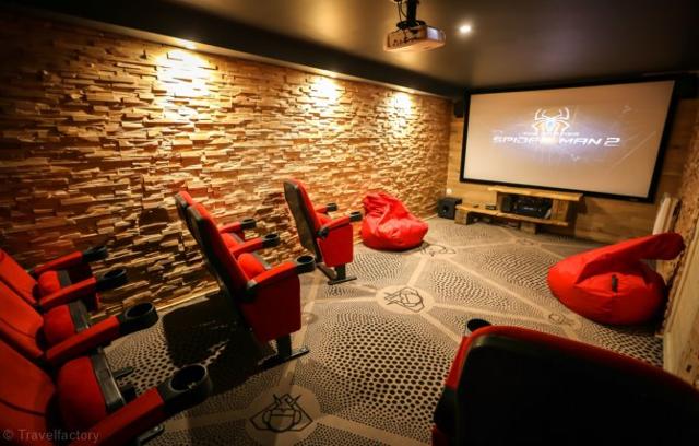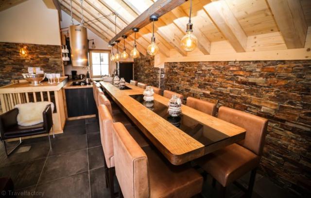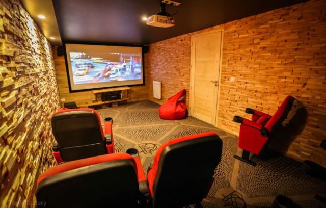 Chalet : De bois et pierre, une ambiance chaleureuse avec une touche moderne. À votre disposition : salle de cinéma, buanderie, 2 places de stationnement, local à ski avec chauffe-chaussures et accès wifi.