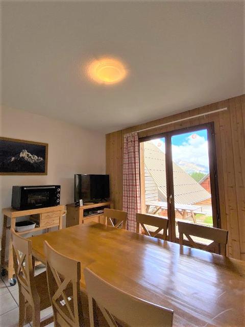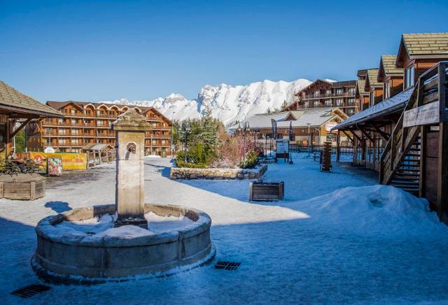 Située à proximité du coeur de la station, à deux pas des commerces et des restaurants, la résidence Les Flocons du Soleil, labélisée FAMILLE PLUS* vous accueille dans un cadre chaleureux et rénové. La vue sur le massif du Grand Ferrand est imprenable. Les trente chalets alpins en bois sont confortables et spacieux. Chacun d'eux se divise en deux appartements duplex allant de 5 à 8 personnes, tous très bien équipés.