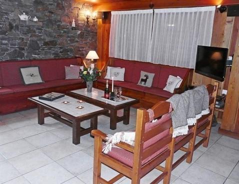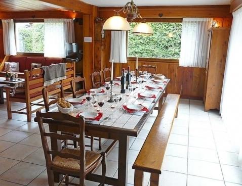 Chalet 7 pièces 230 m2 sur 3 niveaux, aménagement confortable: séjour avec baie vitrée avec table pour les repas. Sortie sur la terrasse. Salon avec cheminée, TV (satellite), chaîne stéréo et DVD. Cuisine ouverte (4 plaques de cuisson, four, lave-vaisselle, four micro-ondes, congélateur). WC séparé. Chauffage électrique. À l'étage inférieur: 1 chambre, 1 grand-lit, WC séparés et douche. 1 chambre, 2 lits, WC séparés et douche. À l'étage supérieur: 1 chambre, 1 grand-lit, salle de bains, WC séparés et TV. Sortie sur le balcon. 1 chambre, 1 grand-lit, salle de bains et WC séparés. Sortie sur le balcon. 1 chambre, 2 lits, salle de bains et WC séparés. 1 chambre, 1 grand-lit et douche/WC. Balcon, situation sud. Meubles de terrasse, chaises longues. Très belle vue sur les montagnes. A disposition: lave-linge, sèche-linge, coffre-fort, fer à repasser, chaise haute pour enfant, lit bébé, sèche-cheveux. Internet (Connexion WIFI). Place de parking, garage (2 voitures). Maximum 2 animaux/ chiens autorisés.