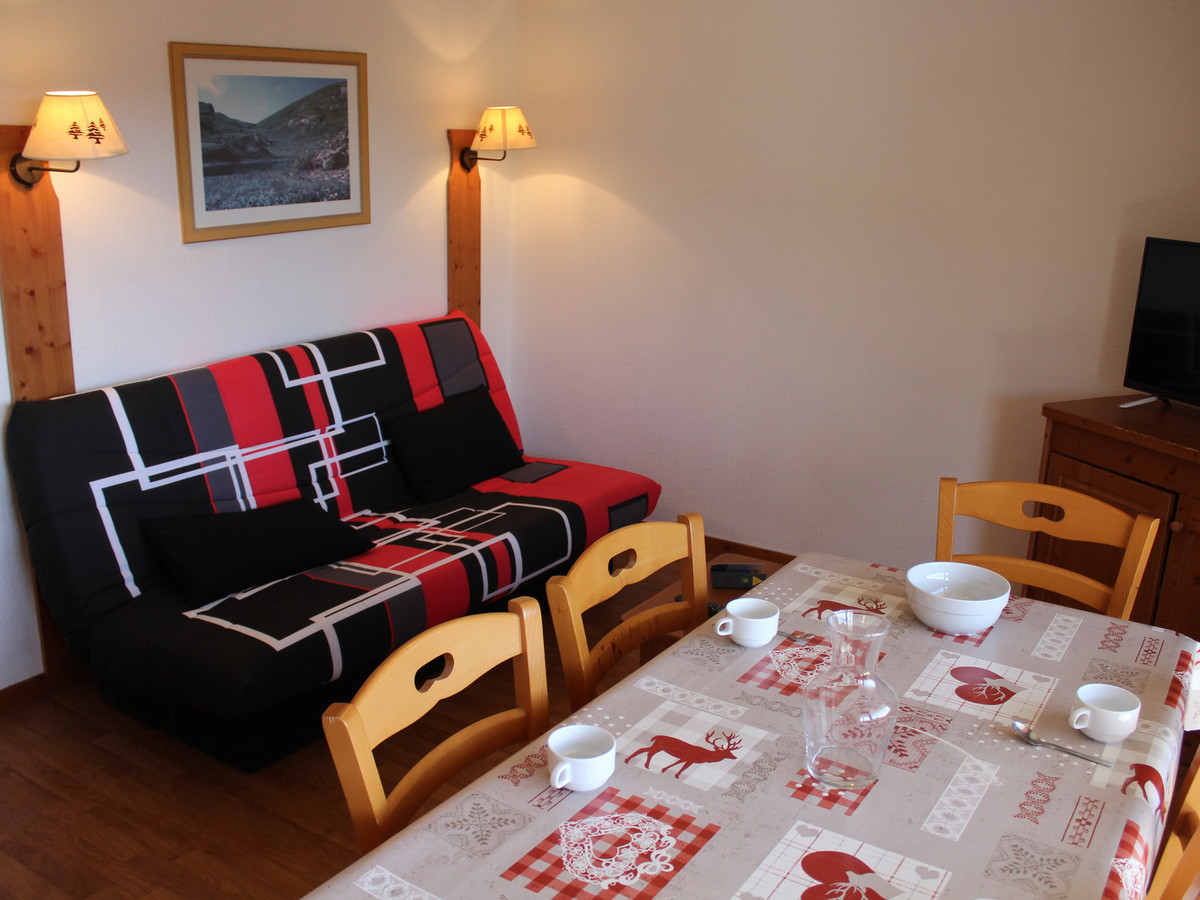 Studio situé dans résidence avec aménagement agréable. Séjour avec canapé-lit double. Cuisine ouverte avec 2 plaques de cuisson. 1 chambre de type cabine avec lits superposés.