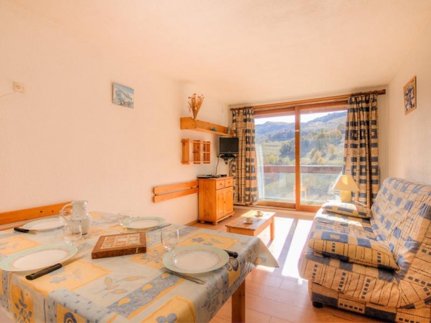 Studio 28 m2 au 1er étage. Séjour/salle à manger avec 2 lits (80 cm), TV (écran plat). Alcôve avec 1 x 2 lits superposés. Coin cuisine (2 plaques de cuisson, mini-four, four micro-ondes, cafetière électrique). Salle de bains, WC séparé. Vue sur les pistes de ski. Maximum 1 animal/ chien autorisé. a noter: logement sans balcon. Inclus: Entrée piscine extérieure-accès illimité 6 jrs, Garantie satisfaction gratuite, Lit supplémentaire, Animal Disponible sur le site avec supplément: Serviettes (premier jeu) 6.0EUR par personne, Linge de lit (premier jeu) 12.0EUR par personne, Poussette 3.0EUR par jour, Mat Ski Adulte 6 jrs Alpin Bleu (skis et chaussures) 60.0EUR prix forfaitaire, Chaise haute 3.0EUR par jour, Mat Ski ou Snowboard Adulte 6 jrs Alpin rouge (chaussures inluses) 84.0EUR prix forfaitaire, Mat Ski Kid 2-6 ans 6 jours (skis et chaussures) 30.0EUR prix forfaitaire, Skis ou Snowboard Adulte 6 jrs Alpin Noir (chaussures incluses) 96.0EUR prix forfaitaire, Ski ou Snowboard Junior 7-12 ans 6 jours (chaussures incluses) 36.0EUR prix forfaitaire, Lit bébé (jusqu'à 2 ans) 3.0EUR par jour Services supplémentaires obligatoires sur le site: Taxe de séjour 0.66EUR par personne et par jour, Nettoyage final 13.1EUR par personne, Taxe de séjour enfants (par personne et par jour), Taxe de séjour bébés (0-2) (par personne et par jour)