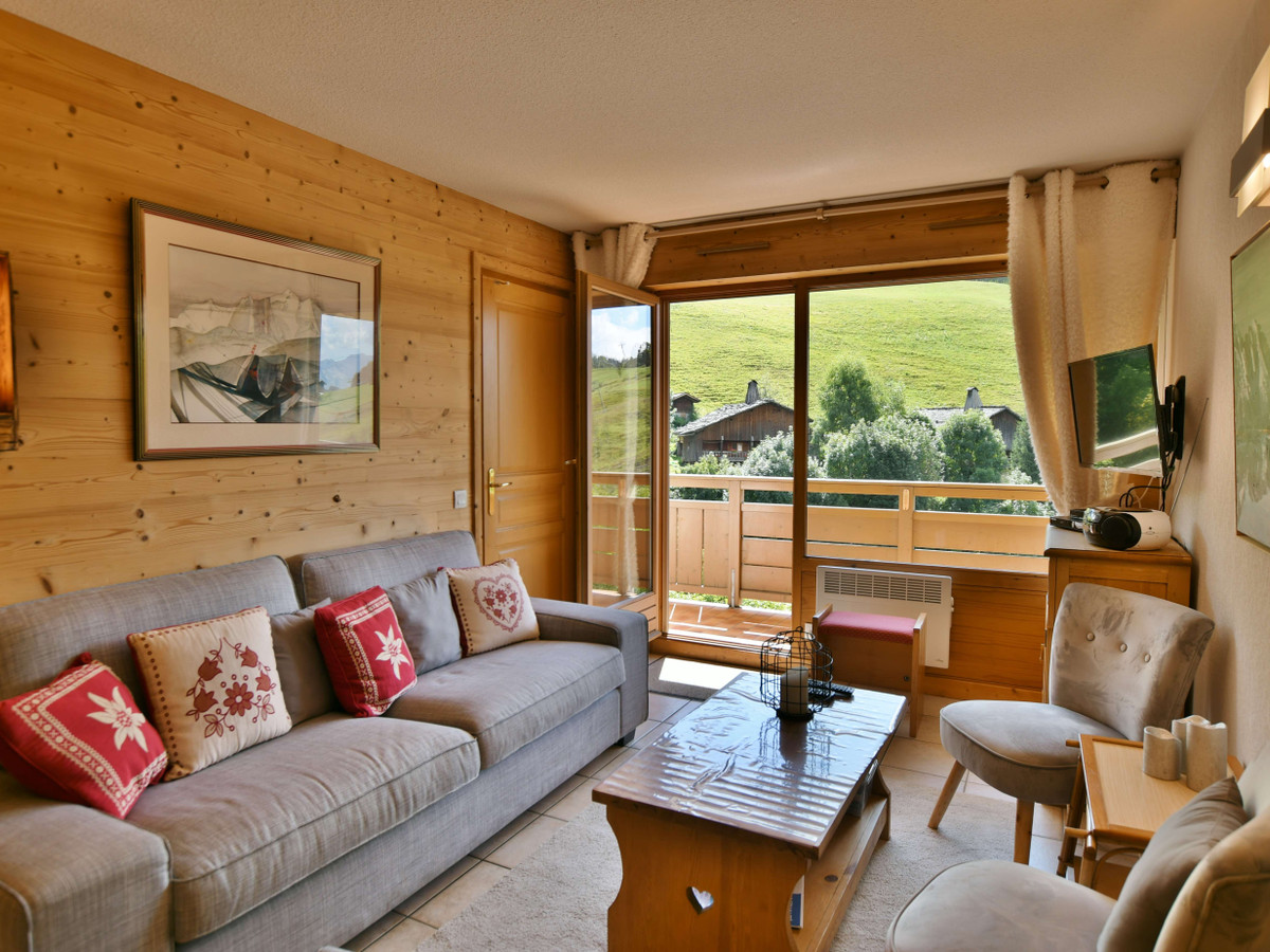 Cet appartement de vacances confortable et chaleureux , situé au 2ème étage de la résidence se compose d'un magnifique séjour avec canapé convertible, une télévision et une cheminée donnant sur balcon sud avec vue imprenable sur la chaîne des Aravis et le village.