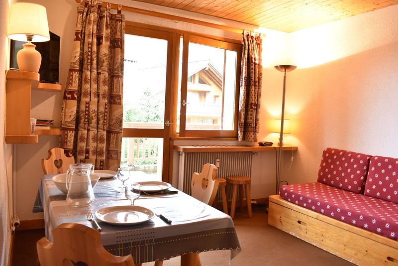 Cet appartement, accessible par ascenseur, se trouve au premier étage de la résidence. Il comprend une cuisine équipée ouverte sur le séjour avec ensemble de lits gigognes relevables et une télévision avec lecteur DVD intégré, une chambre avec 2 lits simples, une salle de bain et un wc indépendant. Un casier à skis est disponible au niveau de l'entrée de la résidence.