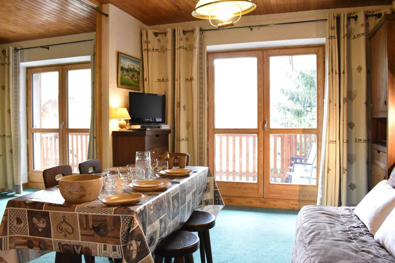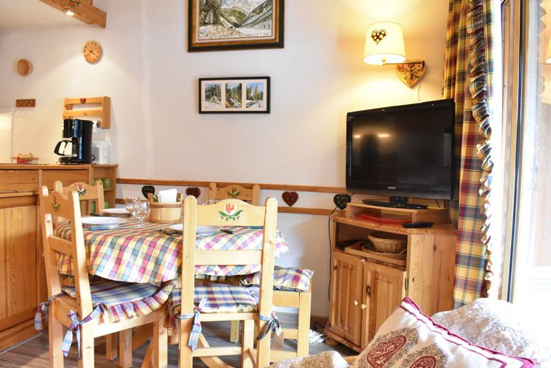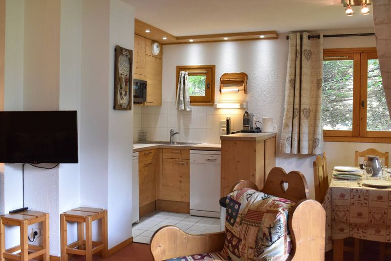 Les plus de cette location dans les 3 vallées : Une terrasse en gravier en rez de jardin exposée Sud et un casier à ski. La cheminée est exclusivement à usage décoratif. Elle ne peut être utilisée.