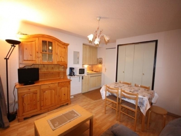 Kitchenette mini four, micro-ondes, plaques vitro-céramique(2feux). 1 Chambre avec 1 lit 2 personnes, Salle de bains, wc séparés.Parking extérieur/Casier à skis /