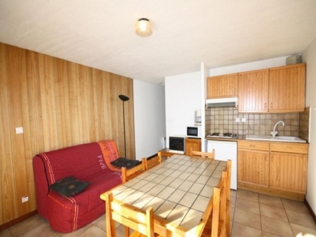 Appartement de type studio 4 couchages dans la résidence La Tour Bâtiment A proche du centre du village et de ses commodités. Situé en rez de chaussée en exposition sud avec terrasse Comprenant :