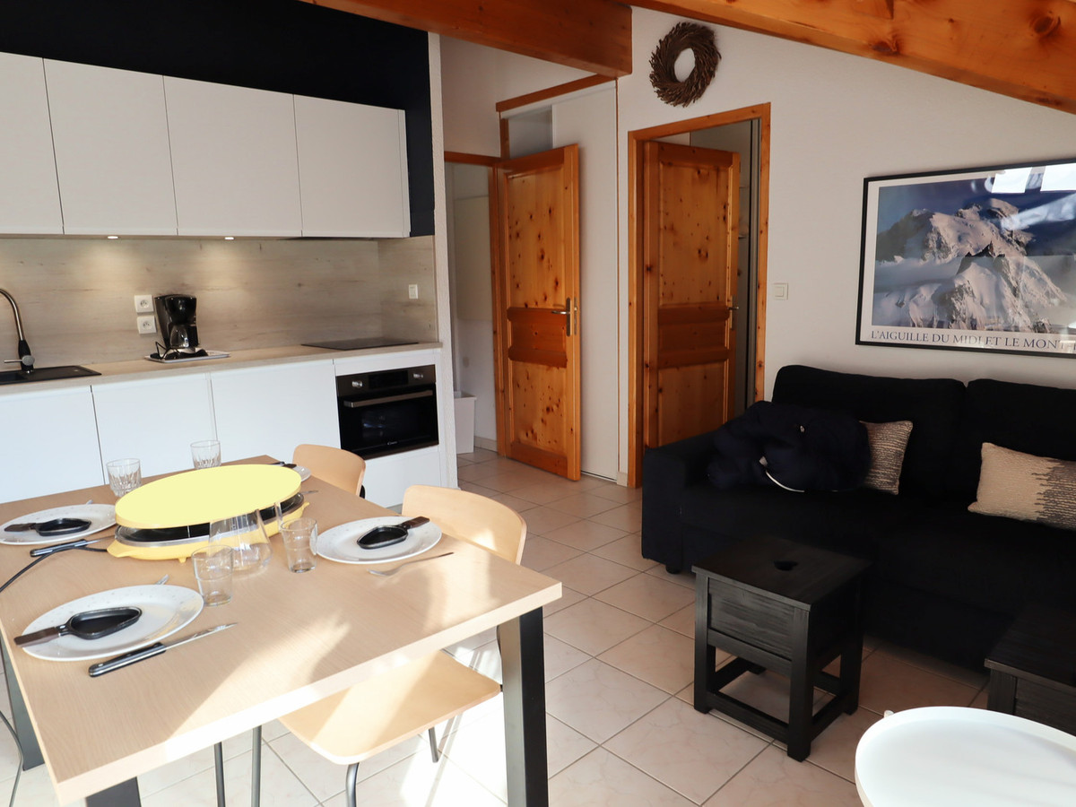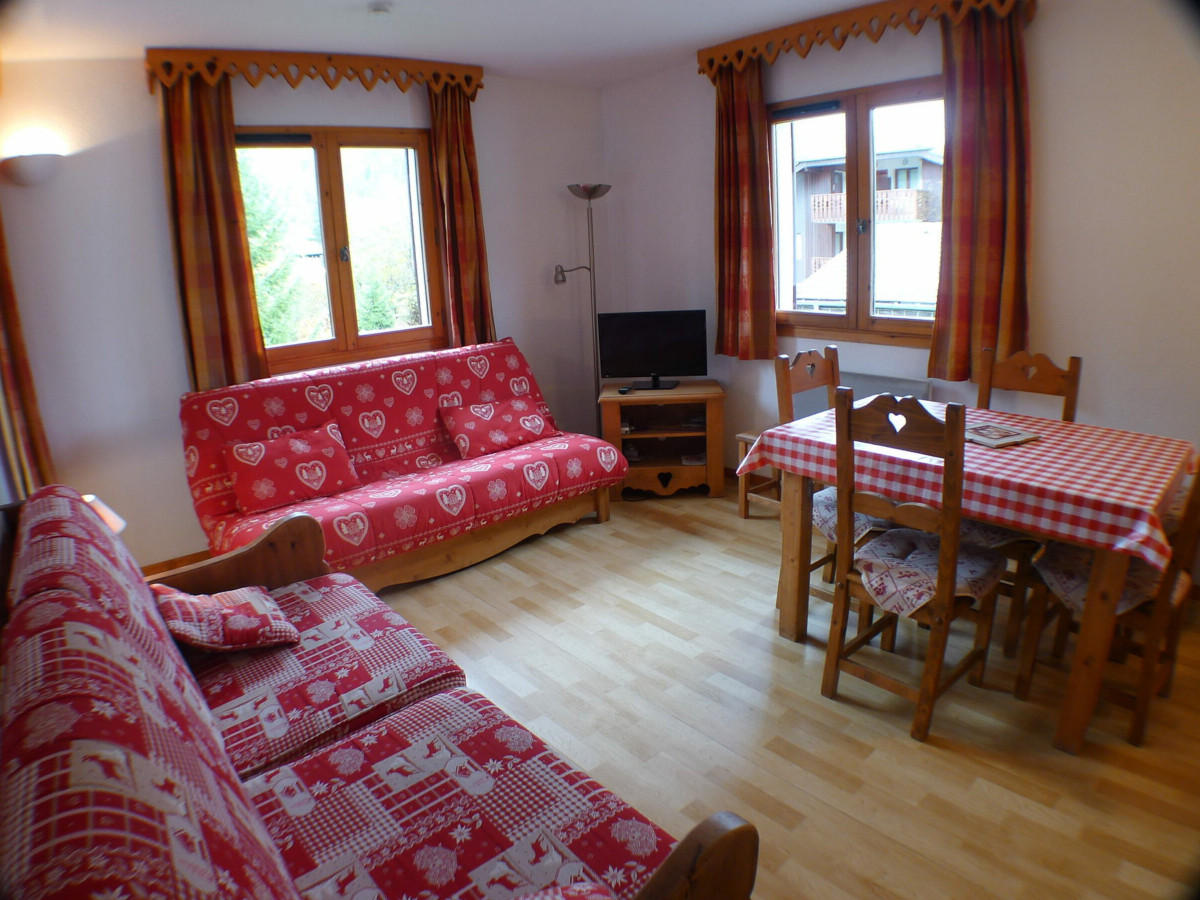 Cet appartement cosy de 45m2, classé meublé 2 étoiles, se situe en rez-de-jardin d'une petite copropriété de 8 logements répartis sur 2 bâtiments de style chalet, dans le quartier calme des Moulins, à deux pas du centre village.
