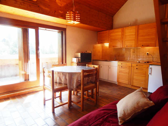 Il se compose d'un séjour-coin cuisine, d'une chambre, d'un coin montagne, d'une salle de bains et de wc séparés.