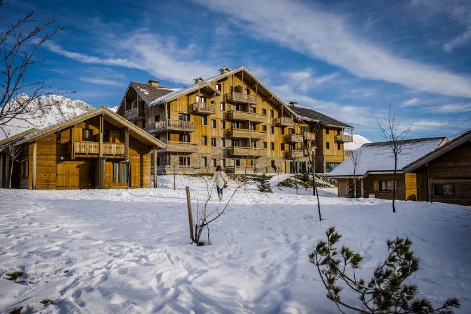 La résidence, construite en bois, est composée de chalets semi individuels et d’appartements répartis dans le bâtiment principal. Les logements sont agréables, confortables et bien équipés. La résidence dispose d'une grande piscine chauffée, et un sauna.