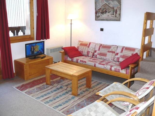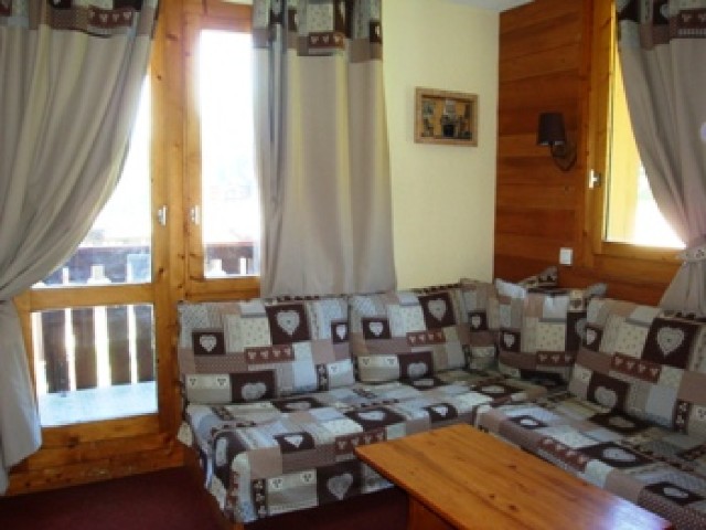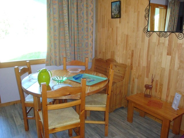 L'appartement: Séjour comprenant 2 lits simples et la télévision. Dans la chambre se trouve un ensemble de lits superposés et un lit simple. Cuisine séparée équipée de plaques électriques, lave vaisselle, four, four micro-ondes et réfrigérateur. Salle de bains et wc séparés. Balcon avec vue sur les pistes. Casier à skis dans la résidence.