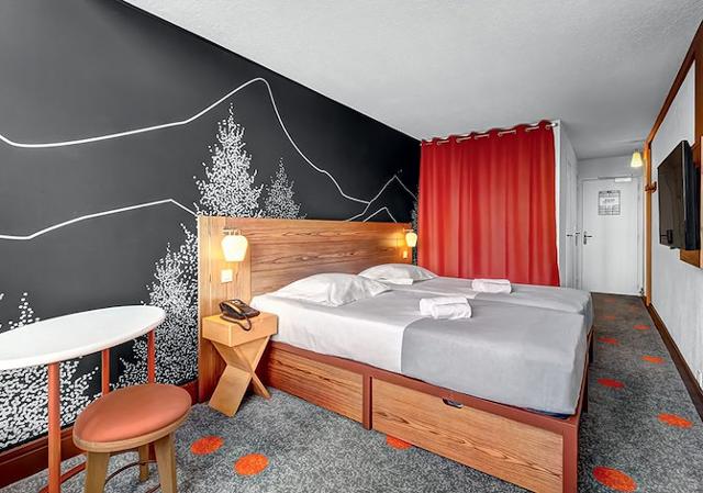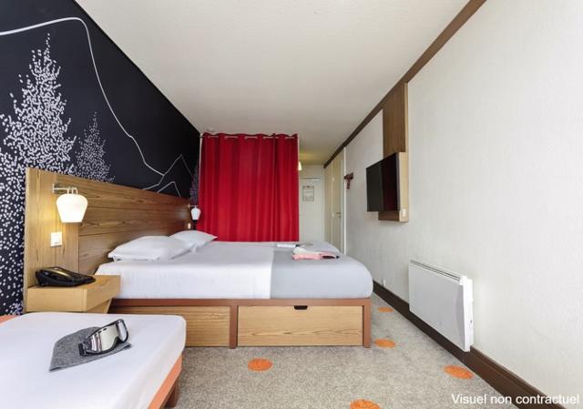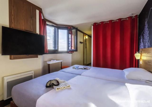Résidence Club : Propose des chambres confortables et bien équipées avec télévision et balcon. Sur place à disposition : terrasse/solarium, accès Wifi, blanchisserie et local à skis.