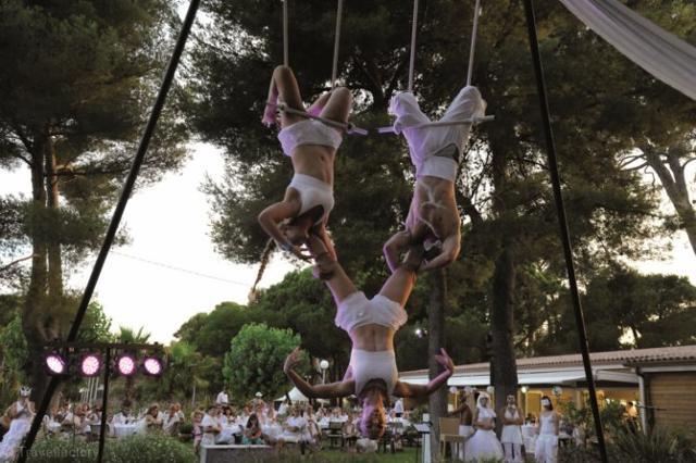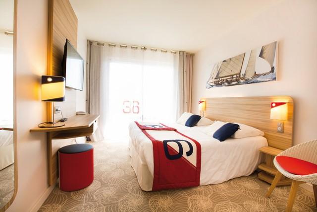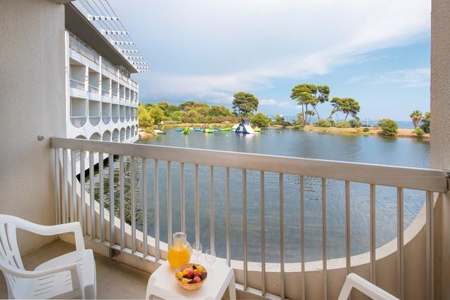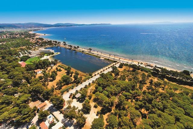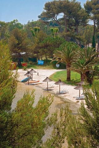 Au coeur d’une pinède de 8 hectares, l'hôtel club est composé de 188 chambres confortables, côté pinède ou côté mer. Sont mis à l'honneur les couleurs éclatantes et le célèbre motif d’empreintes sur bâches de Claude Viallat, fondateur du mouvement Supports/Surfaces. Il dispose d'une plage privée et d'une piscine couverte chauffée toute l’année avec hammam, bassin enfant extérieur en juillet/août, salle de gym de 80 mètres carré, 2 courts de tennis, mini-golf. En saison, accès à la base nautique qui met à disposition gratuitement bateaux à pédales et kayaks. Pour la détente : espace beauté avec soins esthétiques et salon de coiffure (en supplément). Deux bars (dont un avec billard) sont proposés, ainsi qu'un restaurant panoramique climatisé dominant la mer et un restaurant extérieur l’été. De plus se trouvent sur place : salon de jeux et lectures, bar, salle de spectacles, mini terrain de foot, terrain de beach volley, tennis de table, tir à l'arc, aire de jeux, trapèzes volants en juillet et août, structure gonflable sur la base nautique : aquavillage en juillet et août. Des animations sont proposées en journées et en soirée en vacances scolaires, ainsi que des clubs bébés, enfants et ados.