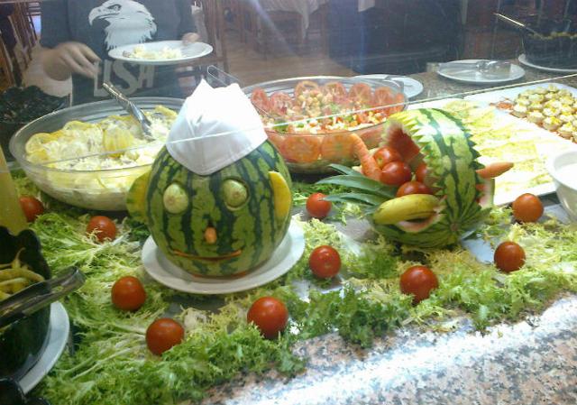 Nourriture affreuse, peu de choix et de mauvaise qualité. Eau payante 1,55 euros la bouteille.... Piscine et abords peu entretenus: bains de soleil et parasol cassés. Hôtel vieillot et bruyant , bien pour passer quelques jours, mais peu reposant. Personnel accueillant et à l'écoute
