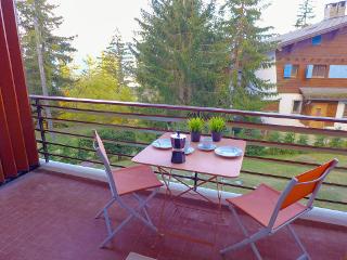 Apt 2 pièces 70 m2 au 1er étage. Aménagement agréable: séjour/salle à manger avec cheminée et TV (câblée). Sortie sur le balcon. 1 chambre avec 1 grand-lit (160 cm, longueur 200 cm), bain/bidet/WC et volet roulant électrique. Sortie sur le balcon. Cuisine (four, lave-vaisselle, 4 plaques vitrocéramiques, grille-pain, bouilloire électrique, four micro-ondes, congélateur, cafetière électrique). WC séparé. Balcon 5 m2, situation sud. Mobilier de balcon, chaises longues (2). Belle vue sur les montagnes et la forêt. A disposition: fer à repasser, sèche-cheveux. Internet (Connexion WIFI, gratuit). 1 animal/ chien autorisé.
