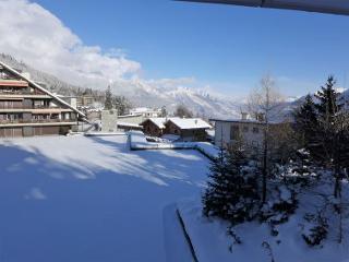 Résidence confortable "Belmont Est", de 5 étages. Dans le quartier de la Combaz, en bordure de la localité, à 1.5 km du centre de Montana, situation tranquille, ensoleillée, à 2.2 km du lac, à 1.2 km du domaine skiable, dans une impasse, orientée sud. Infrastructures de la Maison: ascenseur, local pour les skis, chauffage central, lave-linge, sèche-linge (en commun, en sus). Place de parking (nombre de places limité) près de la maison. Magasins 1.5 km, supermarché 1.6 km, restaurant 1.5 km, boulangerie 800 m, arrêt de bus "Comba" 200 m, lac Grenon 2.2 km. Terrain de golf (18 trous) 3.5 km, remontées mécaniques 1.2 km. Patinoire 1.9 km. Les lacs connus sont facilement accessibles: Lac Moubra 2.5 km. Veuillez noter: ski-bus gratuit. D’autres appartements sont également proposés à la location dans cette maison de vacances.