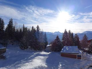 Position: dans le quartier de Des Arolles, en position tranquille, ensoleillée au bord de la forêt. Vue de la maison sur les montagnes.