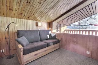 -Un séjour lumineux doté d’un canapé convertible (2 personnes ) et d’un téléviseur avec vue sur les pistes