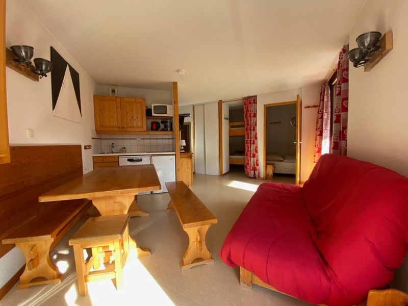 L'appartement se compose de trois chambres, dont l'une dispose d'une douche et d'un lavabo. Une salle de bain avec WC et un WC séparé sont également disponibles pour votre confort. Le séjour lumineux est équipé d'une télévision, créant ainsi un espace convivial pour se détendre après une journée bien remplie sur les pistes. Profitez du balcon exposé à l'est avec son salon de jardin, idéal pour admirer la vue panoramique tout en partageant un repas convivial en plein air.