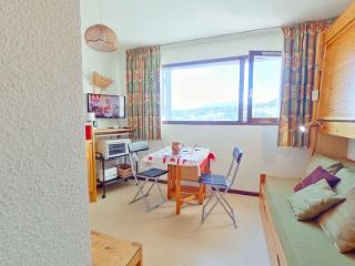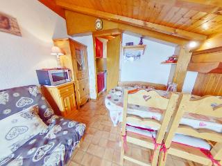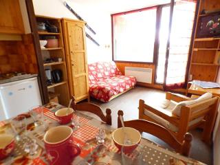 Petite résidence située dans le secteur des Carrets, possibilité de rejoindre le centre station, les pistes et rassemblements ESF par un chemin damé. Appartement studio alcôve situé au 3ème étage de la résidence sans ascenseur (3 étages à monter), orienté sud est avec balcon. L'appartement se compose d'un séjour avec un canapé clic clac 140, d'une kitchenette équipée, d'une alcôve avec 2 lits superposés 2x90 (NB: le lit supérieur est sous la sous-pente - le lit supérieur d'un lit superposé est interdit aux - de 6 ans), d'une salle de bain et d'un WC séparé. Cet appartement est classé meublé de tourisme 1 étoile.
