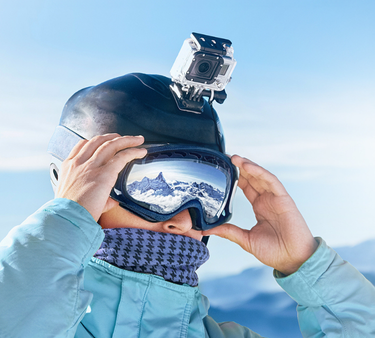 La caméra embarquée permet de filmer ses enfants et son conjoint en train de dévaler les pentes. Grâce à sa maniabilité, il est possible de capturer des images sous de nombreux angles de vues en se plaçant derrière, devant et à côté des personnes à filmer.
