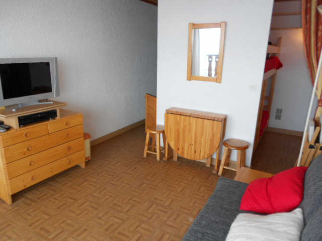 Il se compose d'un sejour avec un canape lit pour deux personnes en 140 cm et d'un coin montagne ferme par une porte avec deux lits superposes en 80 x 150 cm pour deux enfants (8 ans maximum). Appartement equipe de nombreux jeux pour les enfants.