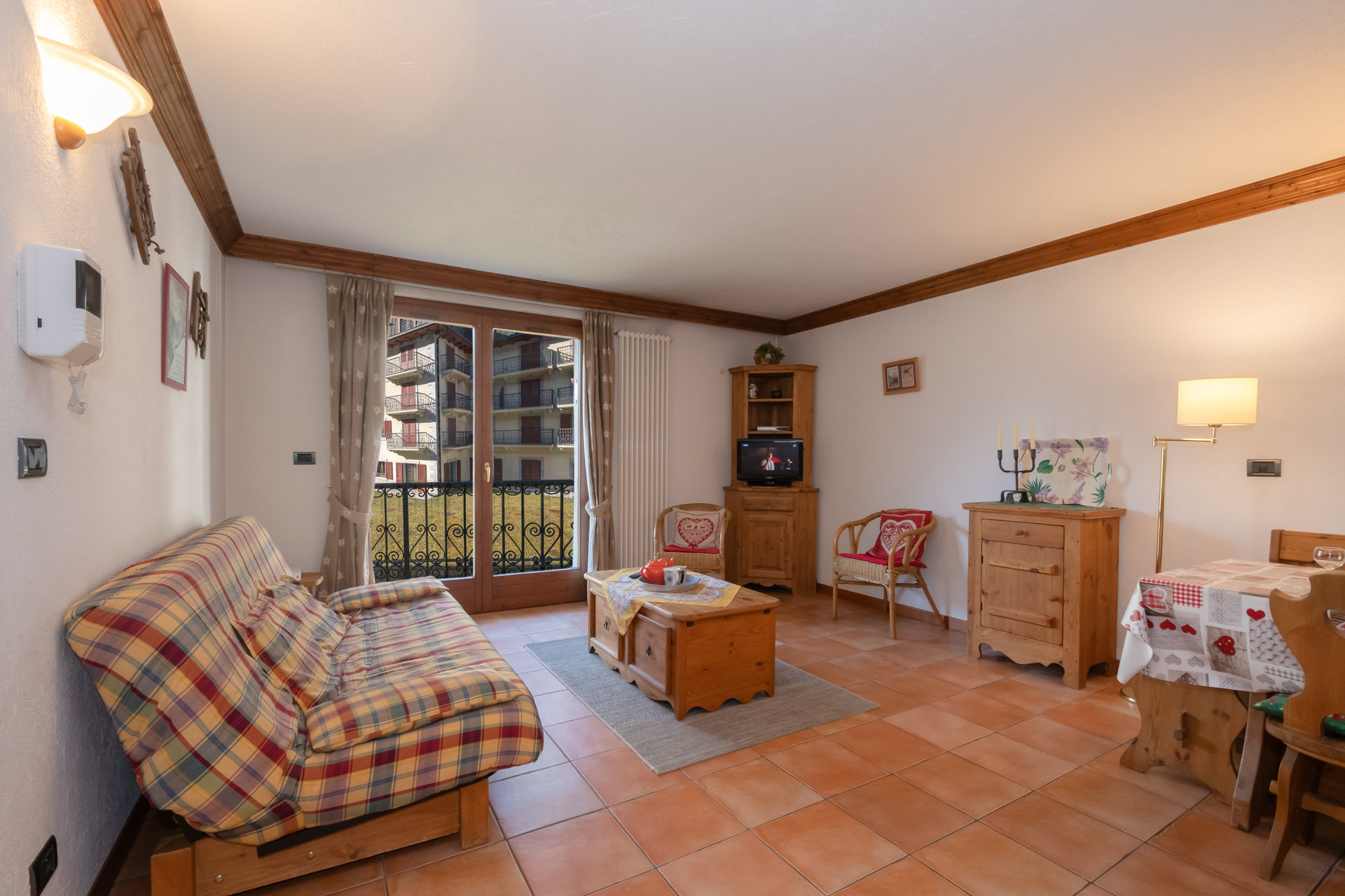 Appartement de deux chambres , Résidence 'Le Lyret ' avec ascenseur; à 1000 mètres des remontées mécaniques du Brévent, et 200 mètres du Téléphérique de l'Aiguille du midu, à 50m du centre ville, comprenant un hall, un Salon, Salle à manger, Cuisine équipée, Chambre avec 1 lit double(140X190) Chambre avec 1 lit simple (80x190) et 1 lit superposé (90X190), Salle de bains à l'italienne, [hidden] indépendant, 1 balcon orientation Plein sud sur le Mont-Blanc.