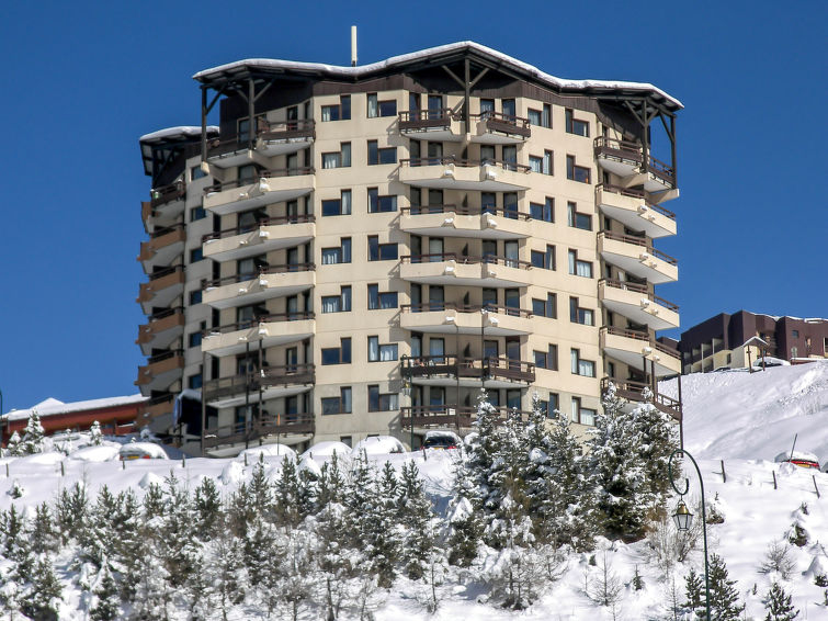 Appartement 2 pièces + coin montagne pour 5 personnes de 32m2, exposé Sud, au 6ème étage avec balcon. Vue dégagée sur les cimes. Il se compose d'une entrée avec des lits superposés, d'une chambre avec 1 lit double et d'un séjour avec 1 banquette lit 1 pers.
