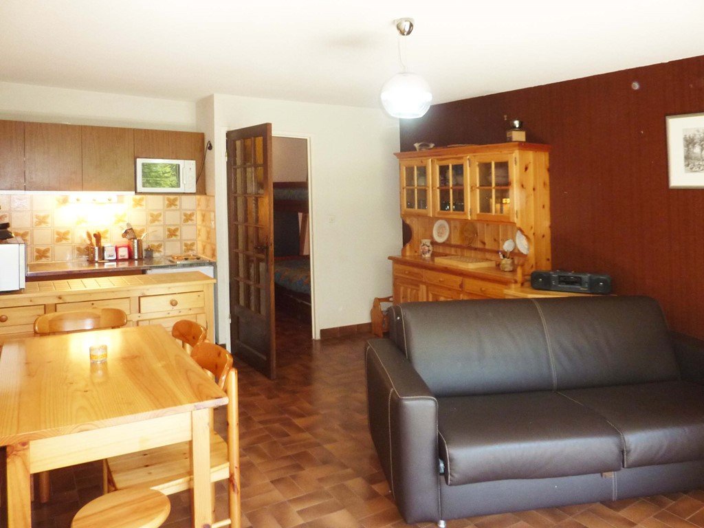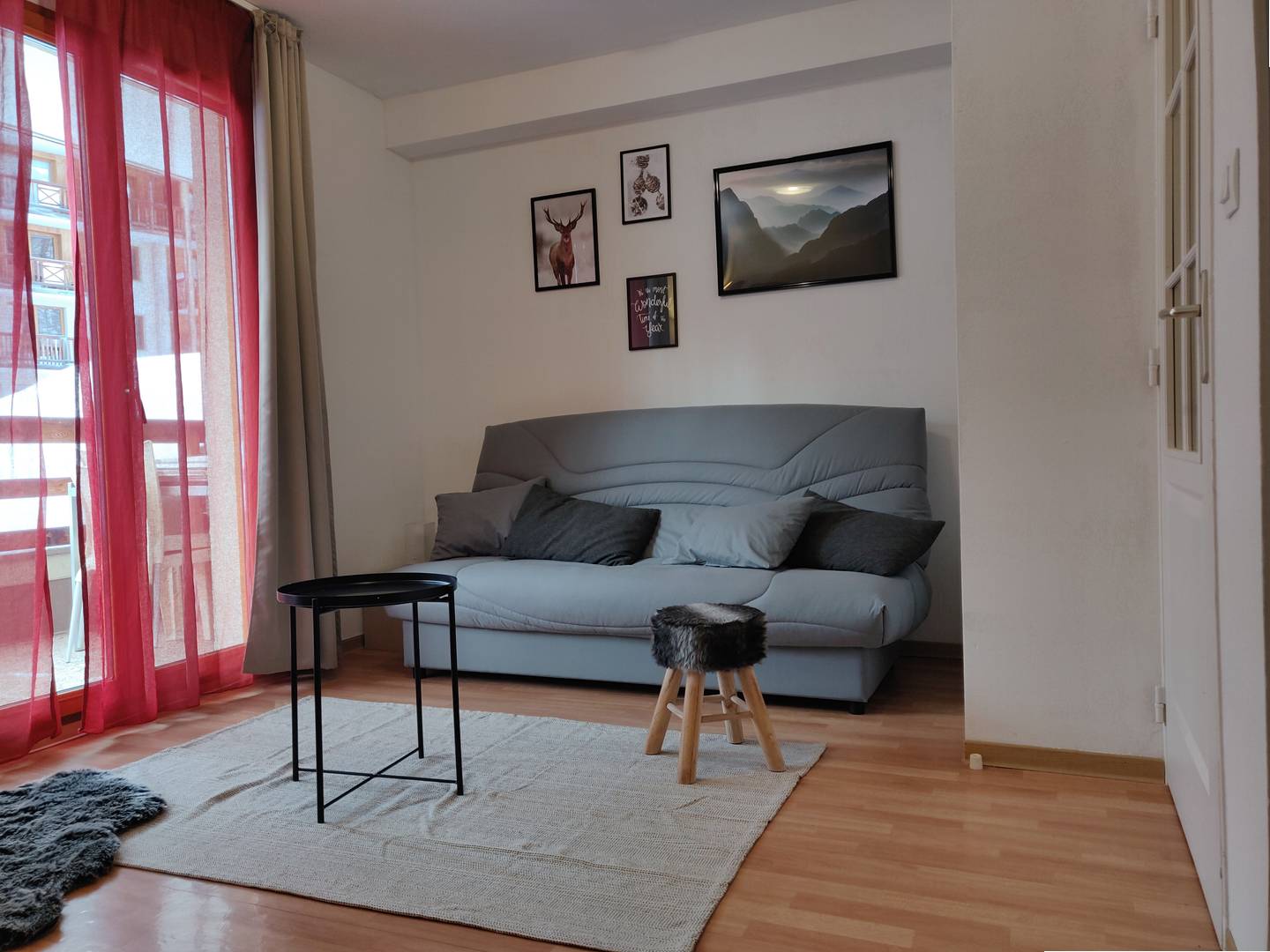Studio équipé pour 4 personnes situé au 1er étage avec ascenseur de la résidence Les Flocons, à 400 m du centre station, accès très rapide aux pistes par le télesiège de Prébois face à la résidence. Il est composé d'un coin montagne avec 2 lits superposés 1 place, d'un séjour avec un canapé lit 2 places, d'un coin cuisine équipé, d'une salle de bains, WC séparés, balcon exposition sud.