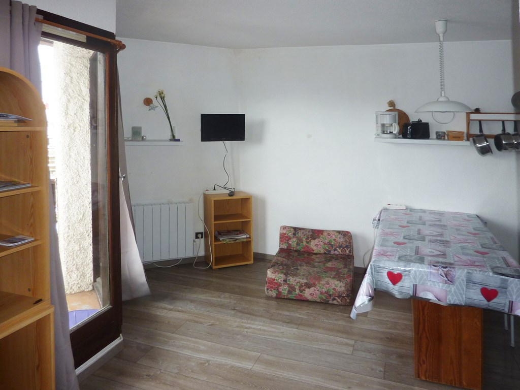 Résidence les Gradins, au centre de la station, départ skis aux pieds, à proximité de tous commerces au premier étage et sortie ski au septième étage. Grand studio équipé pour 4 personnes en exposition SUD comprenant une entrée avec 2 Lits superposés 1 place, un séjour avec 1 Banquette convertible 2 places, une salle de bains avec wc indépendants et un coin cuisine. Balcon exposition Sud offrant une belle vue sur la patinoire. Box à ski privatif au niveau sortie ski.