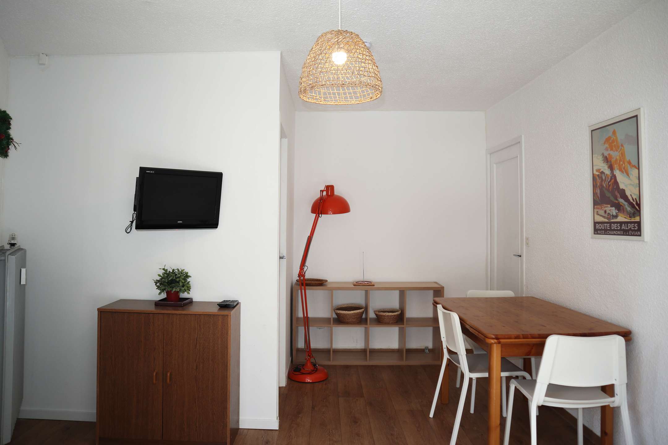 Joli studio équipé pour six personnes au 6 ème étage dans une résidence au calme avec solarium, et parking communal payant devant la résidence, accès aux pistes, commerces et animations à 50 mètres.
