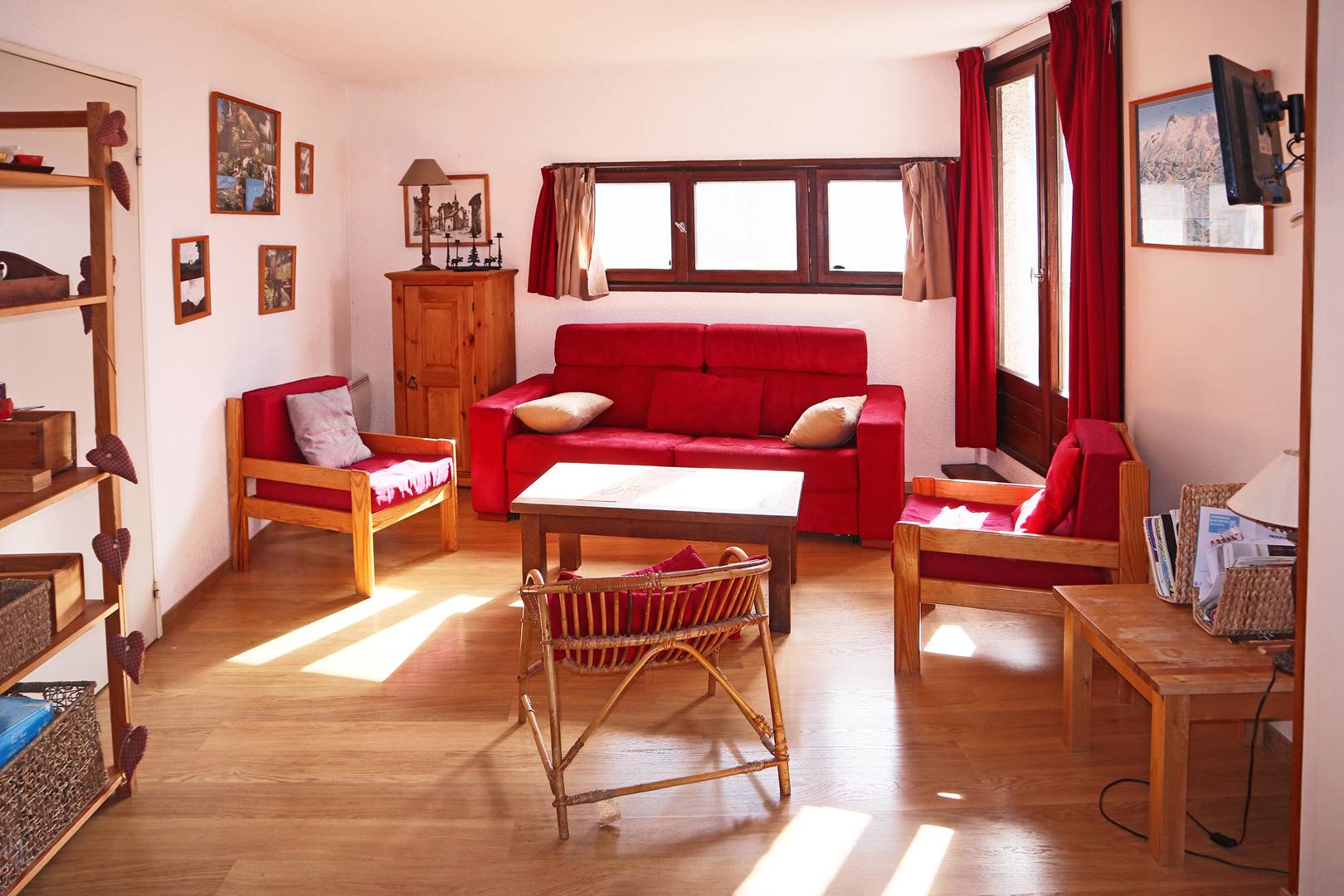 Bel appartement 2 pièces pour 6 personnes au 5 ème étage de la résidence, idéalement situé à deux pas du centre de la station, comprenant une entrée, un coin montagne avec 2 lits superposés 1 place, un séjour avec 1 banquette convertible 2 places, un coin cuisine, une chambre avec 2 lits 1 place, une salle de bains et wc séparés. Balcon accessible de la chambre ou du séjour, belle exposition Sud donnant sur la station. Départ skis aux pieds de la résidence et proche garderie.