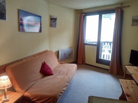 Dans la résidence le Boussolenc, au dessus de la galerie commerciale, départ skis aux pieds. Coquet studio aménagé pour 4 personnes situé en centre station, comprenant une entrée, un séjour avec 1 banquette convertible clic-clac 2 places, un coin cabine avec 2 lits superposés 1 place, une salle de bain avec wc, un coin cuisine, Balcon offrant une très belle vue sur les pistes exposition Sud en sixième étage.