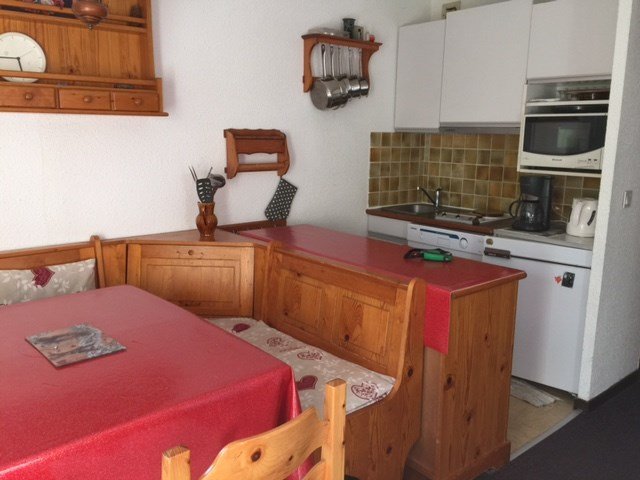 Le studio comprend deux fois 2 lits superposés une place dans l'entrée, un séjour avec une banquette convertible BZ deux places en 160 cm, un coin cuisine ouvert sur le séjour, une salle de bains et WC séparés. Balcon exposition Sud. Box à skis. A cinq minutes du centre station, des commerces et des activités. Moquette au sol.