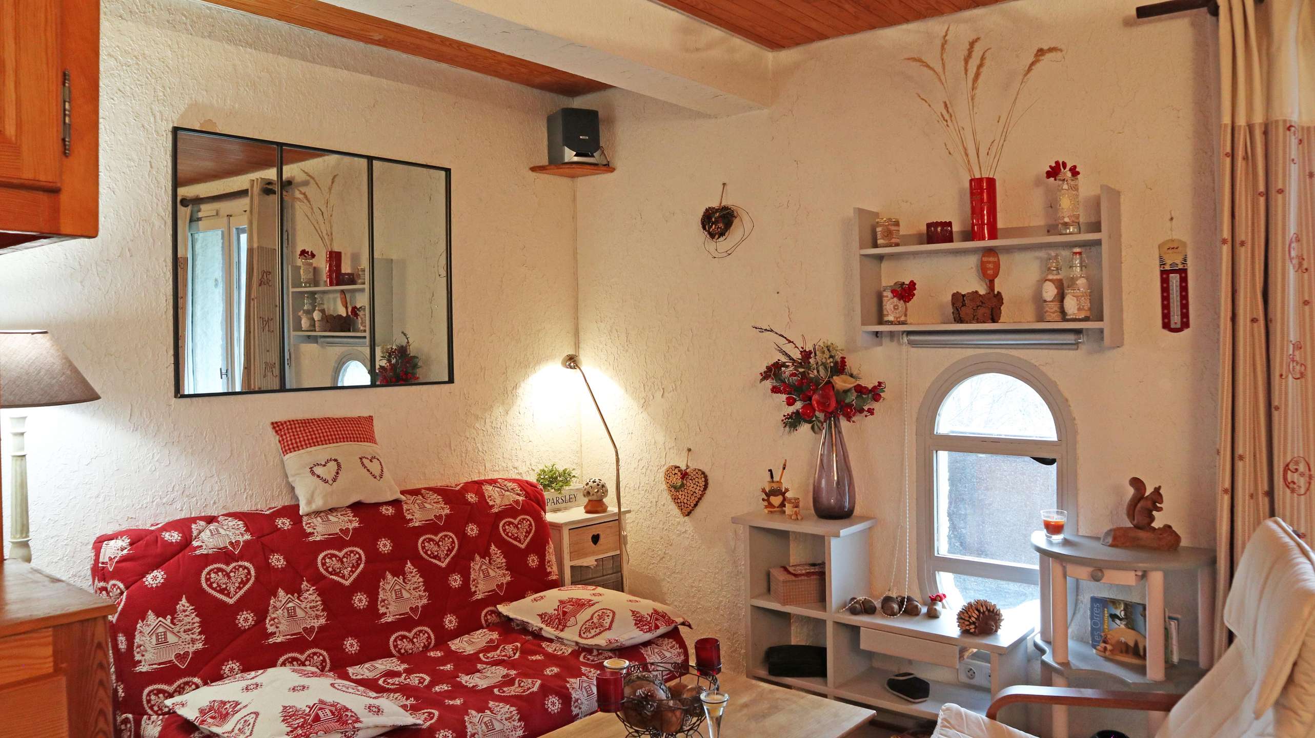 Studio équipé pour 4 personnes composé d'une entrée avec 2 lits superposés 1 places d'un séjour avec 1 banquette convertible 2 places, salle de bain avec wc indépendants, coin cuisine ouvert sur le séjour, balcon exposé sud avec vue sur les pistes.