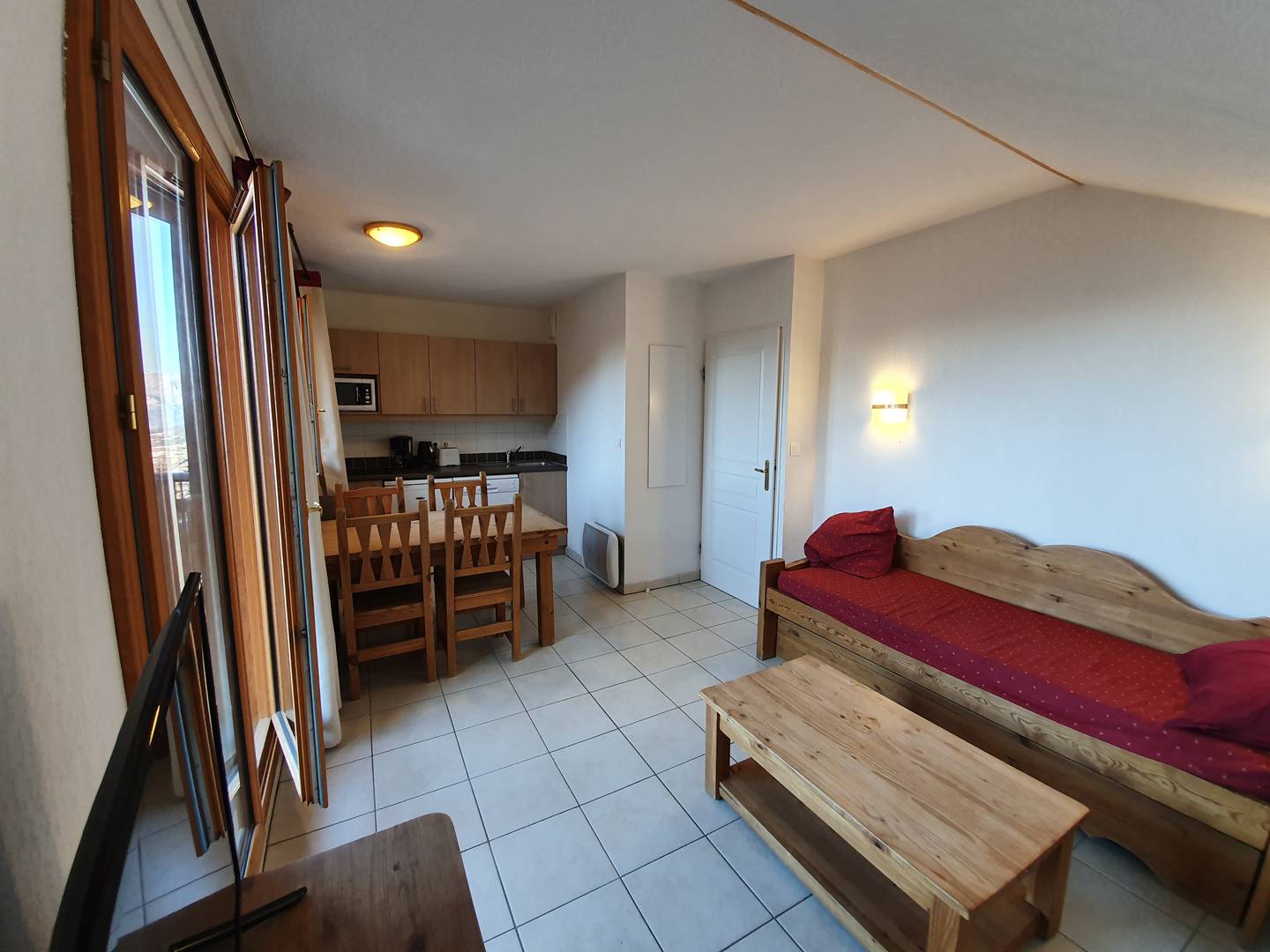 Studio - coin nuit de 27m² équipé pour 4 personnes + parking idéalement situé aux Orres 1650, proche de toutes les commodités de la place centrale piétonne.