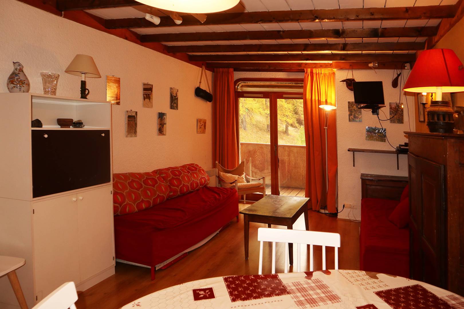 Départ skis aux pieds, au coeur des mélèzes, dans quartier calme, à 400 mètres du centre station, parking extérieur communal. Très joli studio de bon confort, belles prestations, comprenant, entrée, placard, un coin montagne 2 lits superposés 1 place, une salle de bains et WC indépendants, cuisine américaine ouverte sur le séjour, banquette convertible 2 places, grand balcon, exposition sud/est. 2 ème étage.