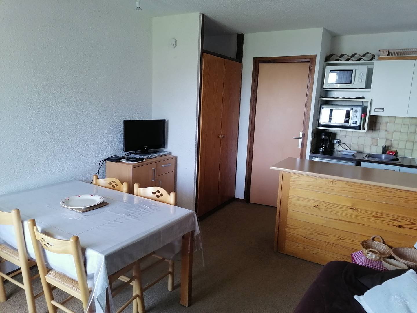 Studio 4 personnes situé dans la Résidence Le Méale au centre de la station des Orres 1650 m avec parking communal extérieur payant devant le bâtiment.