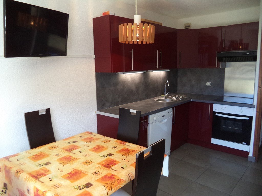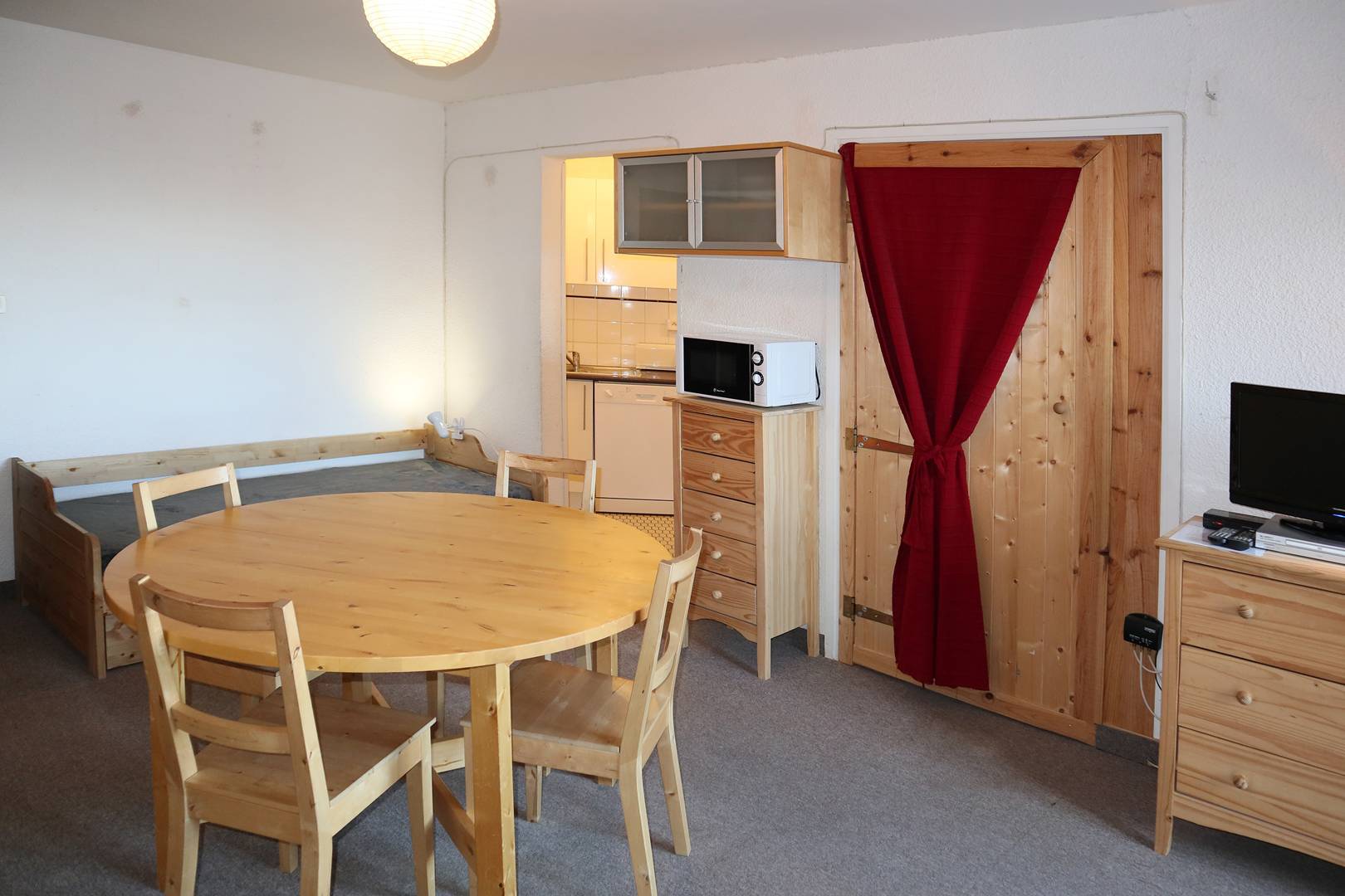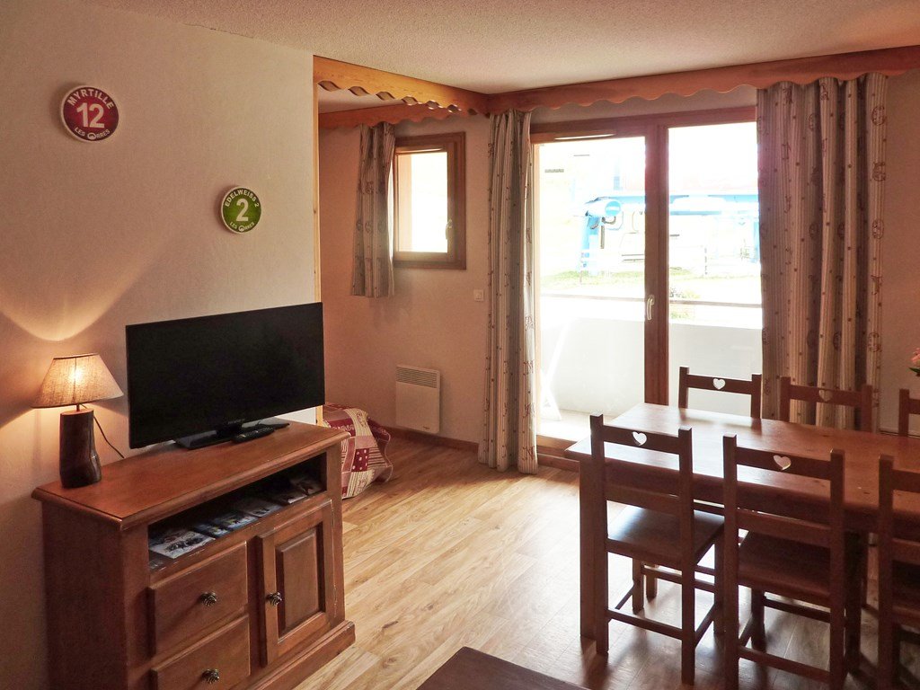 Studio équipé pour 4 personnes composé d'une entrée avec 2 lits superposés 1 place d'un séjour avec 1 banquette convertible 2 places, salle de bains et wc séparés, coin cuisine ouvert sur le séjour, balcon exposé sud offrant une très belle vue pistes.
